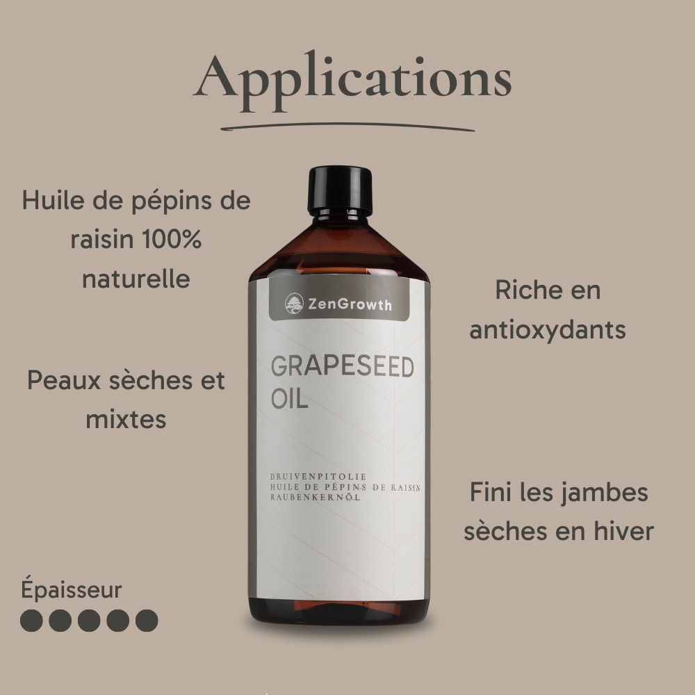ZenGrowth Huile de pépins de raisin 100% naturelle 1l