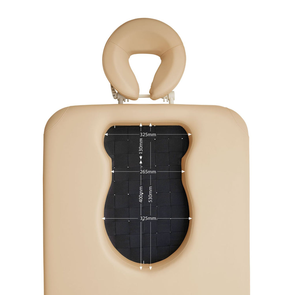Même si tu ne proposes pas des massages prénataux tous les jours, la Lima reste un excellent choix : elle peut en effet être utilisée comme table classique, sans aucune restriction. Tu peux choisir de n’utiliser que la découpe poitrine, idéale pour soulager la pression sur les seins, également pour les femmes non enceintes. Et si tu veux l’utiliser comme une table traditionnelle, il suffit de combler l’ouverture. Astuce : place un petit rouleau ou une serviette roulée dans l’ouverture pour offrir un soutien supplémentaire à la poitrine ou au ventre.