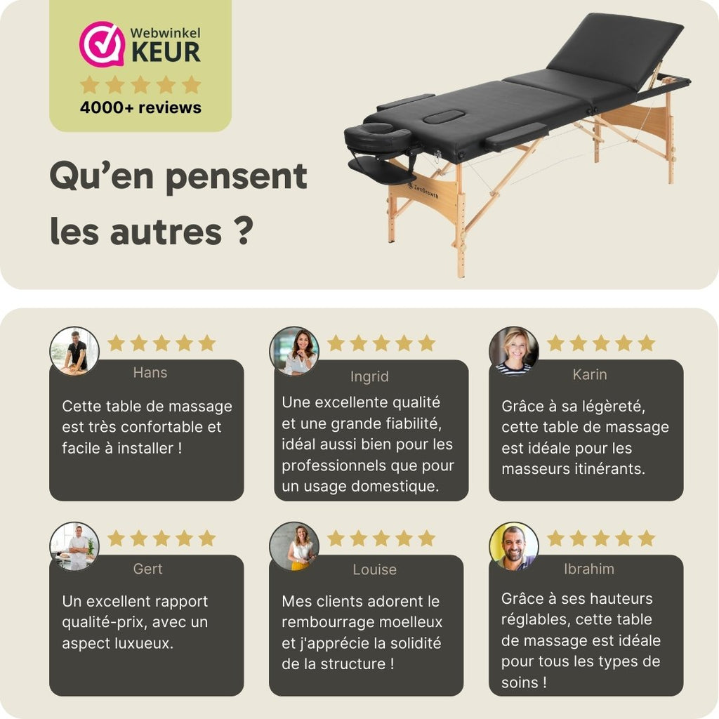 • Plus large et confortable que les autres tables de massage de cette gamme de prix.