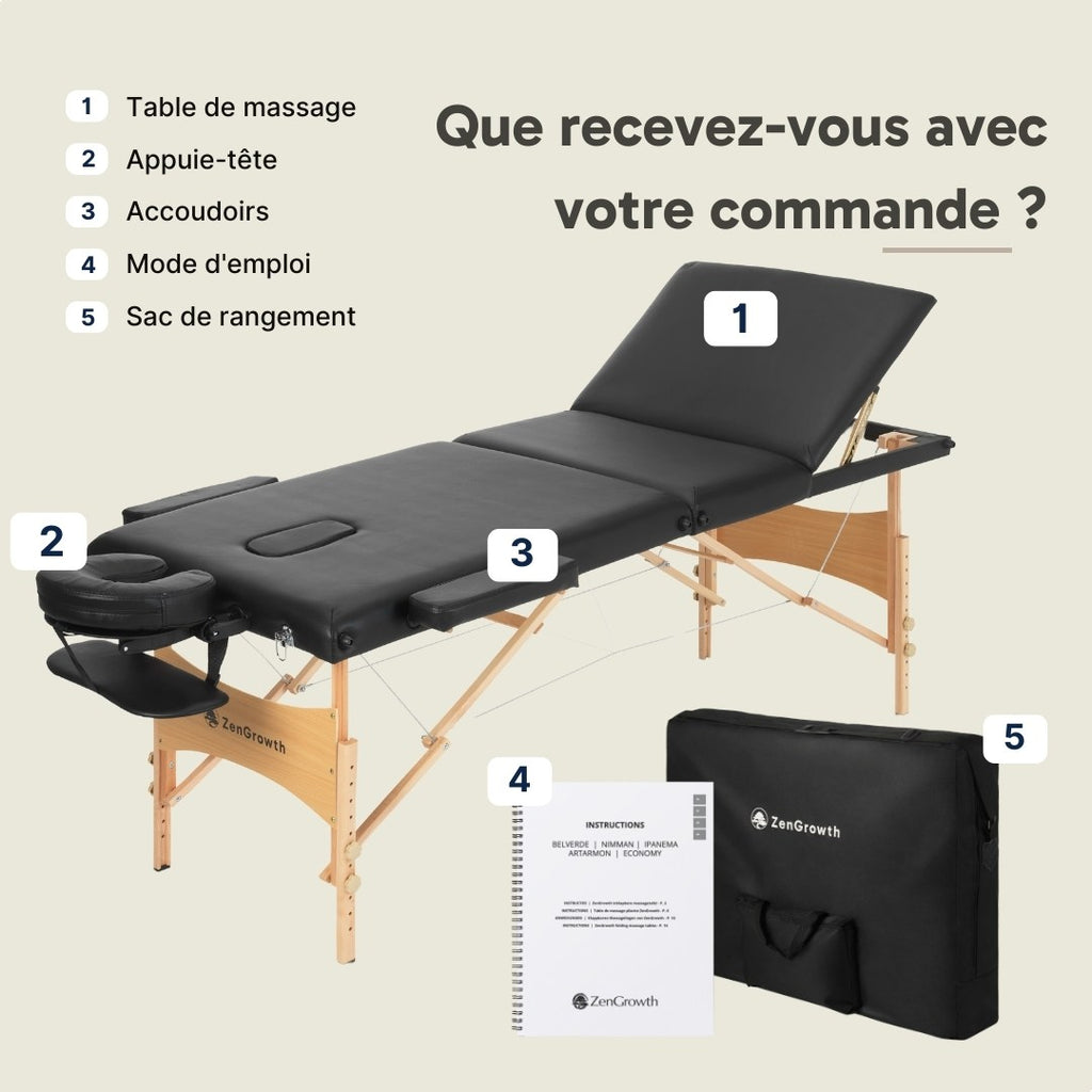 ZENGROWTH Table de massage pliante Economy Liftback Noir
