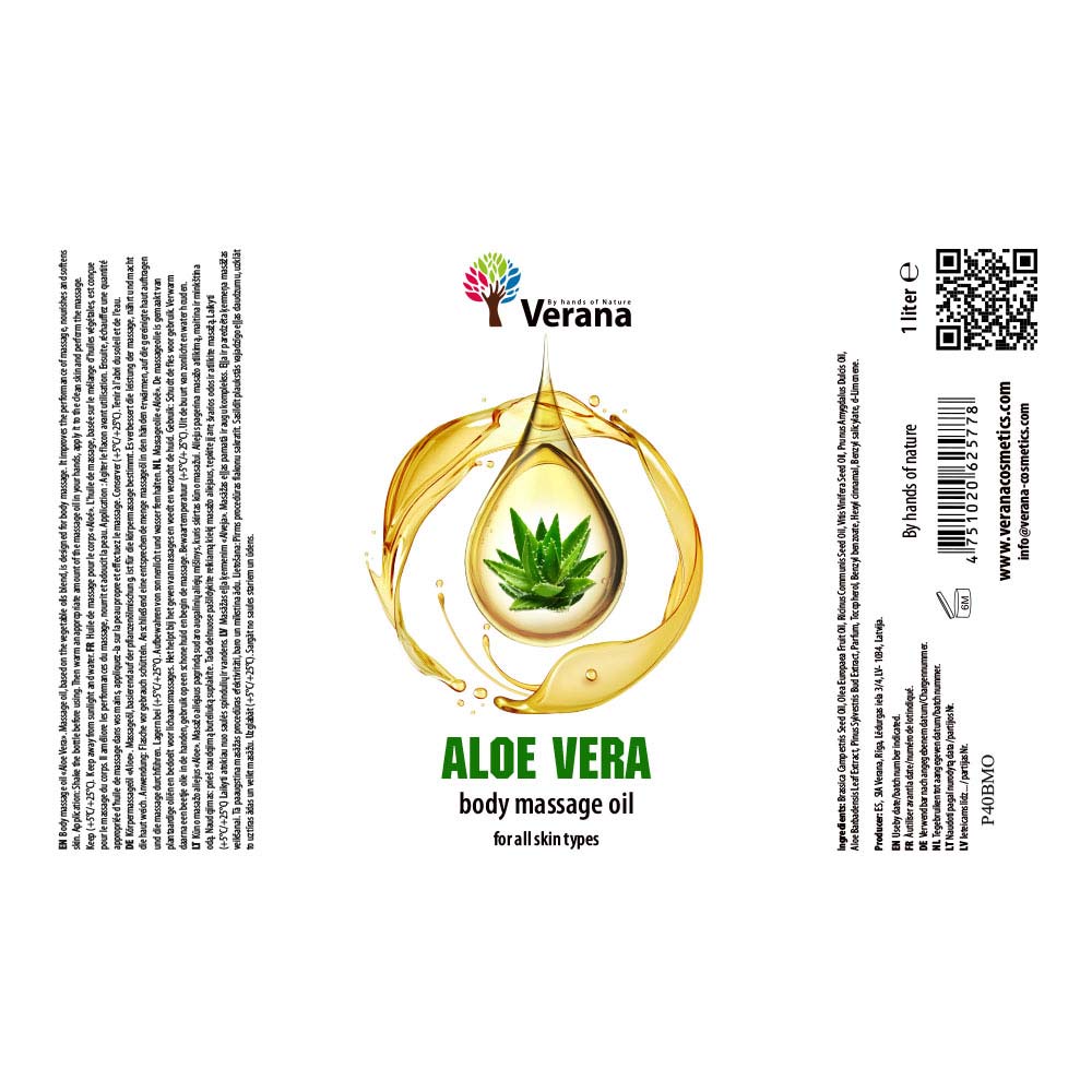 L'huile de massage Verana Aloe Vera est une merveilleuse huile de massage d'été à l'extrait d'Aloe Vera. L'extrait est extrait de la première pression à froid des feuilles de la plante d'aloe vera et a des propriétés protectrices et soignantes pour la peau. Par exemple, elle est souvent utilisé dans les cosmétiques pour les irritations cutanées, les coups de soleil et les problèmes de peau tels que l'eczéma et l'acné. L'aloe vera hydrate la peau et a un effet apaisant.